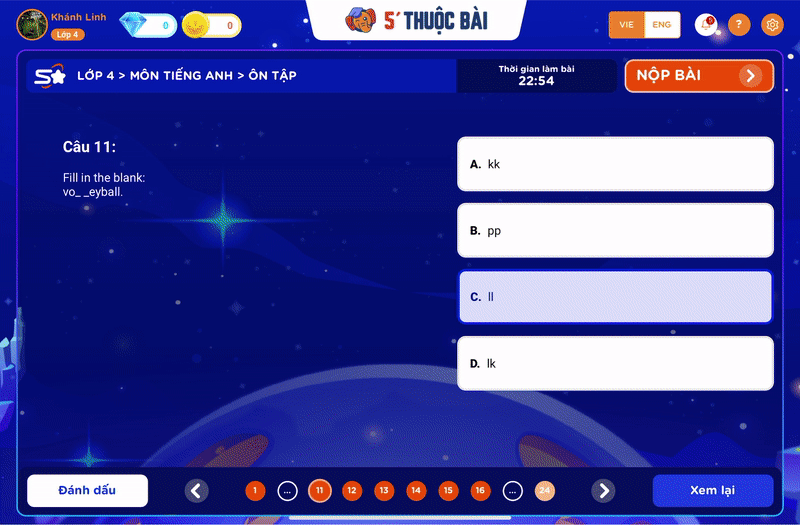 Bạn có thể biết kết quả làm bài và đáp án nhanh chóng. Thành tích làm bài cũng được hiển thị cụ thể để tạo động lực CẢI THIỆN ĐIỂM SỐ hay CHINH PHỤC BÀI THI MỚI đấy!